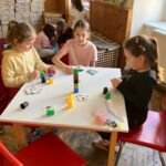 Březen byl v naší družině ve znamení příprav a jarní energie. Děti nejprve poctivě trénovaly na velký souboj v deskových hrách a ve volných chvílích se věnovaly četbě nebo stavbě domečků – ty vznikaly nejdříve v herně a s prvním sluníčkem i venku z přírodnin. Kulturní zážitek nám přinesla návštěva galerie Pošta v Dubé, zatímco o pohyb se postaralo akční odpoledne v tělocvičně. Na zahradě jsme společně obnovili pocitový chodník, který děti hned po vyčištění s nadšením otestovaly bosou nohou. Závěr měsíce patřil Velikonocům. Kromě výroby pestrých ozdob jsme si užili i tematickou venkovní stezku s úkoly. Březen jsme si zkrátka užili naplno, v pohybu i tvoření!