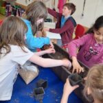 Měsíc březen jsme trávili většinou venku. Ať už na školní zahradě (vypleli jsme například bylinkový záhon a zahráli si poznávací hru) nebo v Lesoparku (plnili jsme úkoly a našli poklad) nebo při sběru žab. Ale také na hřišti před školou-tam je vždy o zábavu postaráno (různá vozítka, fotbal, prolézačky či vaření z přírodnin). Protože se přiblížily Velikonoce, vyráběli jsme v družině papírové kraslice, vystřihovali zajíčky a kreslili slepice – tím vším jsme pak vyzdobili družinu a chodbu školy, něco si děti odnesly domů. Zkoušeli jsme plstění a občas si i zatančili. Také jsme sportovali v tělocvičně. Děti měly možnost přihlásit se do herního turnaje a také do družinových kroužků. Pokud nemáme zrovna program, děti staví z LEGA, z papírových cihliček a mění mezi sebou kartičky.