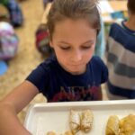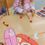 V úterý byl svátek svatého Martina – a nás Martin provázel celým dnem. Nejprve jsme se podívali na jeho příběh – jak byl dobrý a pomohl chudému žebrákovi tím, že mu dal část svého pláště. Potom jsme si o Martinovi povídali a ze slov, které byly k tématu ( MARTIN, VÍNO, SNÍH, HOSTINA…) jsme vyvodili nové písmenko N. Trénovali jsme zrakové rozlišování, počítali svatomartinské rohlíky, skládali puzzle a vyrobili obrázek svatého Martina na koni, kolem kterého padá sníh (když ten pravý venku nepadal)