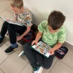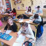 Páťáci se sv. Martinem strávili 3 hodiny. Začali volným psaním na téma, co by dělali, kdyby je někdo na ulici prosil o pomoc s tím, že je mu zima. Ve skupinách si zahráli na novináře, kde si přečetli rozhovory s Martinem v různých etapách jeho života, měli za úkol tvořit další otázky. Je pravda, že jsme nenašli ani žádnou novinářskou kachnu, vlastně husu. Pak děti vytvářely komiks na téma, které měly ve své skupině. Nakonec jsme si přečetli o hodnotách, které nám symbol Martina přináší a děti psaly vzkaz Martinovými ústy dětem dnešní doby. V matematice jsme „pekli“ rohlíčky a počítali, jaké množství je třeba různých surovin na jejich výrobu, kolik zaplatíme při nákupu, zda je levnější nebo dražší si rohlíčky vyrobit doma nebo koupit a kolik vydělá firma, když je prodá pěkně zabalené, aby lahodily oku, takže jsme se dotkli i reklamy. Nakonec si děti procvičily počítání a rozběhly se za tajenkou.