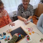 Čtvrťáčků bylo po málu, ale senioři nám to vynahradili. Zahráli jsme si hru picasso, kde jsme se všichni nasmáli. Vyrobili jsme vánoční přáníčka a pochutnali si na brumících, které nám k této příležitosti upekla paní učitelka .