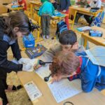 Ve třetí třídě bylo hned od rána veselo. Sešlo se tam tolik pohádkových postav z večerníčků….Pat a Mat, vodník Česílko, Rákosníček, Krteček, Mach a Šebestová, Dorotka aj. Proto pohádkové dopoledne začali evokací, kdy sdíleli popisy svých pohádkových postav a pomocí myšlenkové mapy, kterou si společně vytvořili, si připomněli, co vše je napadne, když se řekne slovo VEČERNÍČEK.Dále děti využily metodu INSERT, kde četly a značily si, co už znají, co je nové, čemu nerozumí. V závěrečné části dopoledne následovalo tvoření, hry ukryté v QR kódech a reflexe. Děti vše shrnuly metodou pěti prstů.