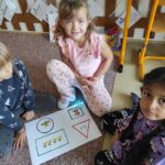 Poprvé si vyzkoušely programování včelek, každá měla dorazit od pohádkové postavy k jejímu písmenku. To se dětem opravdu líbilo. Poté jsme četli jména postaviček a spojovali se správným obrázkem. Geometrické tvary jsme si zopakovali pomocí ozobotů, počítali jsme a porovnávali pohádkové postavy. Poté jsme psali jejich jména. Závěrem jsme si zahráli pexeso. Dnešní čtenářskou gramotnost jsme si moc užili.