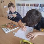 V hodině čtenářské gramotnosti se osmáci vrátili v čase – až do doby, kdy televizní obrazovky ovládal Večerníček. Společně shlédli úryvek z nejstaršího večerníčku Kluk a kometa, a poté se pomocí tematické křížovky dozvěděli, kdo byl „otcem“ celého projektu. Správná odpověď zněla – Milan Nápravník.