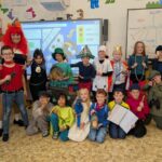 Pomocí interaktivních kvízů a osmisměrky na Lumio a blooket jsme si otestovali znalosti o tématu. Nechyběla ani vlastní tvorba – žáci psali originální příběhy a výtvarně zpracovali své oblíbené postavy. Den utekl jako voda a nezbývá než popřát: ,,Dobrý večer a dobrou noc.“